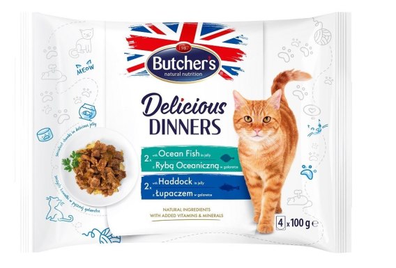 BUTCHER'S Delicious Dinners Ryba oceaniczna, łupacz - mokra karma dla kota - 4 x 100 g