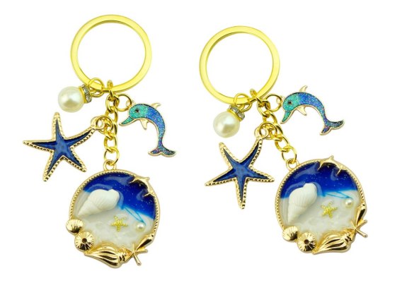 Brelok Ozdoba Ocean Rozgwiazda Delfin Niebieski Złoty