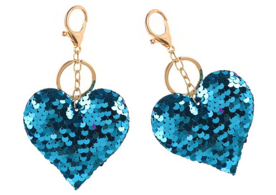 Brelok w kształcie serduszka ozdobiony jest dwustronnymi cekinami. Po przejechaniu ręką niebieskie cekiny odwracają się, ukazując srebrną stronę. To elegancki i praktyczny dodatek do kluczy lub torebki, dodający blasku i stylu.
