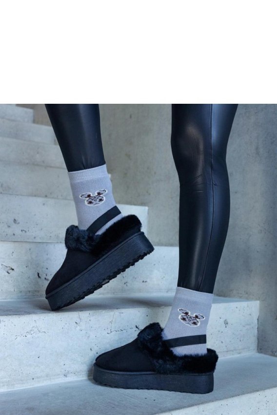 Czarne kapcie na platformie ozdobione futerkiem i z gumką przy pięcie Frank - Solea