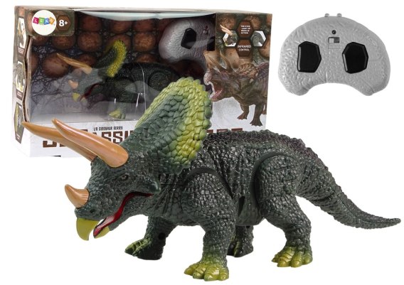 Triceratops idealnie przypomina prehistorycznego gada, jego pancerz, łuski są odwzorowane z najmniejszym szczegółem. Po włączeniu oczy się rozjaśniają i świecą w kolorze czerwonym. Ruchy wyglądają bardzo realistycznie. Super zaletą jest zdalne sterowanie na podczerwień. Dwa przyciski pomogą poruszać się w przód, rusza głową, paszczą i łapami. W trakcie zabawy wydaje charakterystyczne dźwięki dinozaurów.