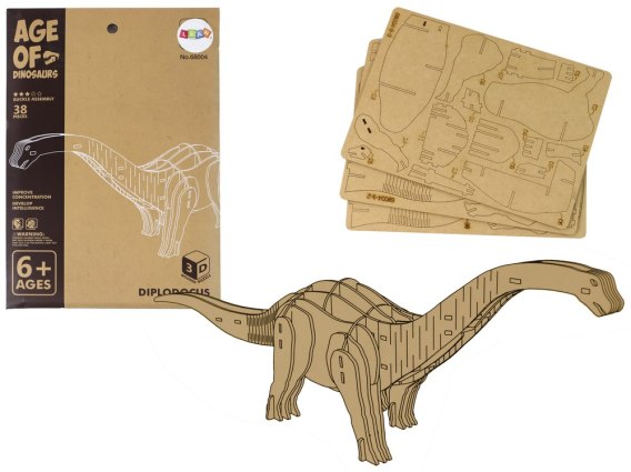 Drewniane Puzzle Przestrzenne 3D Brontozaur Składanka Edukacyjna 38 Elementów