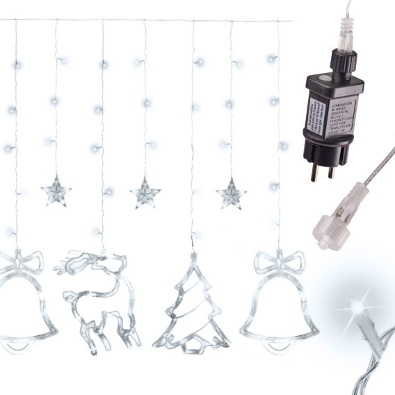 Lampki LED kurtyna renifer 2,5m 138LED świąteczne choinkowe zimny biały ze złączem