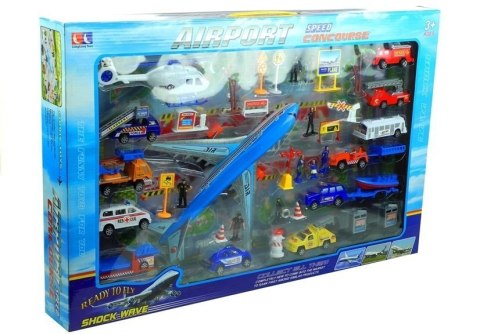 Wieloelementowy zestaw zabawek lotniskowych składa się między innymi z: