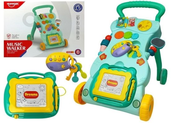 - Chodzik posiada odłączane zabawki: klucze do samochodu z dźwiękiem oraz tablice znikopis do rysowania