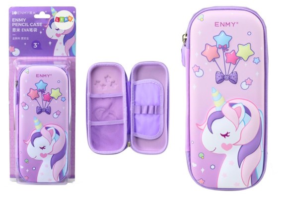 Piórnik Z Jednorożcem Rozkładany 3D Fioletowy 23x10x5 cm