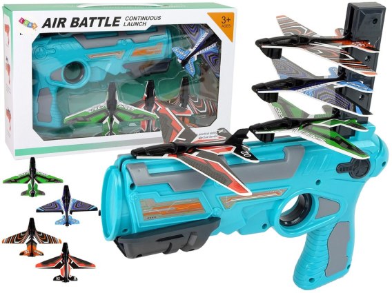 Ekscytująca zabawka, która zapewni zabawę na wiele godzin. Pistolet z wyrzutnią samolotów to idealna propozycja. Tym zestawem można bawić się w domu lub na zewnątrz, oczywiście zachowując warunki bezpieczeństwa.