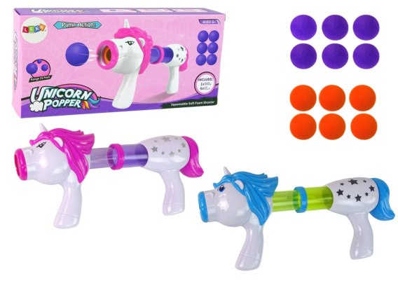 Pistolet Wyrzutnia na Miękkie Kulki Jednorożec Niebieski Różowy