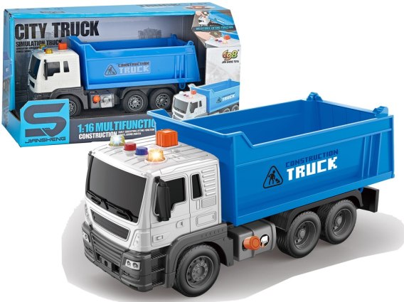 Samochód wyposażony jest w ruchomą naczepę, który można podnosić i opuszczać. Dzięki możliwości poruszania Twoje dziecko może za jego pomocą załadować mniejsze zabawki, a następnie wysypać je w innym miejscu. Funkcje dźwiękowe i świetlne dodają realizmu, można przenieść się w świat budowy.