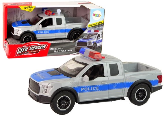 Samochód Terenowy Policji Szary w skali 1:14. Ten pojazd posiada napęd pull-back, otwierane drzwi, maska bagażnik, gumowe bieżnikowane koła, efekty świetlne LED z dźwiękiem alarmu, i wiele innych szczegółów, zapewniając mnóstwo radości podczas zabawy!