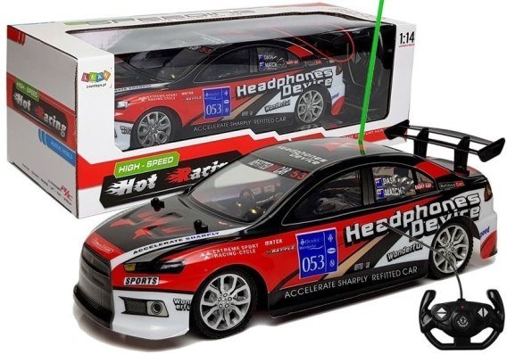 Dołączony pilot redukuje wszelkie zakłócenia podczas zabawy, dzięki częstotliwości 27 Mhz. Wyposażony jest w przyciski ze strzałkami przód — tył oraz prawo — lewo. Jest to szybki model, o którym mówi także wnętrze samochodu w którym umieszczony jest sam kierowca i pokazany jest cała skomplikowana budowa silnika. Zarówno karoseria, jak i pozostałe detale pojazdu zostały przeniesione do mniejszej skali 1:14. Na drodze amortyzowane zawieszenie pozwala na płynną jazdę.
