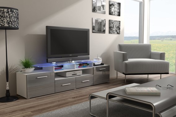 Szafka RTV EVORA 200 biały/szary połysk