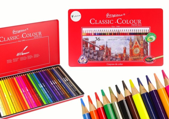 Zestaw 36 Kredek Artystycznych Metalowy Pojemnik