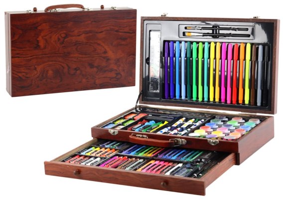 Zestaw Artystyczny w Drewnianej Walizce 123 Elementy
