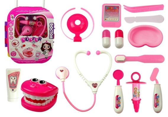 Są dzieci, które już od najmłodszych lat wiedzą, co chcą robić. Jeśli Twoje dziecko leczy wszystkie zabawki i twierdzi, że chce zostać lekarzem, wyposaż je w tę Walizkę Małego Dentysty. Jej bogate, wieloczęściowe wyposażenie i estetycznie wykonane przyrządy lekarskie pobudzą wyobraźnię dziecka i pozwolą mu połączyć fantastyczną zabawę z nauką i rozwojem własnych pasji. Starannie zrobione imitacje prawdziwych narzędzi lekarskich ucieszą dziecko. Wplatanie takich zestawów do zabaw jest również świetną metodą pozwalającą w prosty sposób wytłumaczyć dziecku, że wizyta u lekarza to nic strasznego. Ogromną zaletą zestawu jest jego uniwersalizm. Zabawka może stanowić zarówno walizkę, którą dziecko niesie w rączce jak i w pojazd na kółkach. Zestaw wykonany w kolorze białym.